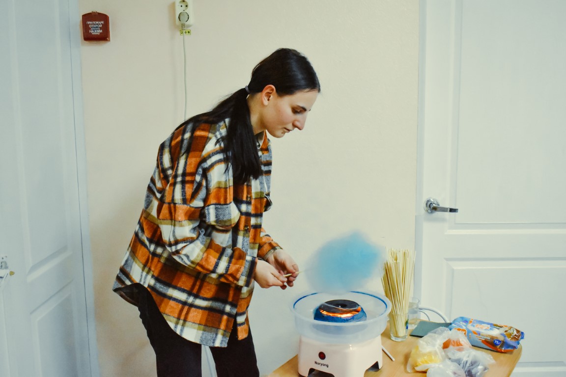 Приятным сюрпризом для детей стал прибор для приготовления сладкой ваты, который привезли с собой волонтеры. Все присутствующие увидели процесс изготовления сахарной ваты и попробовали кулинарный продукт. Это увлекательное мероприятие позволило создать не только вкусное и красивое лакомство, но и подарило воспитанникам бесценные минуты общения со своими старшими товарищами.