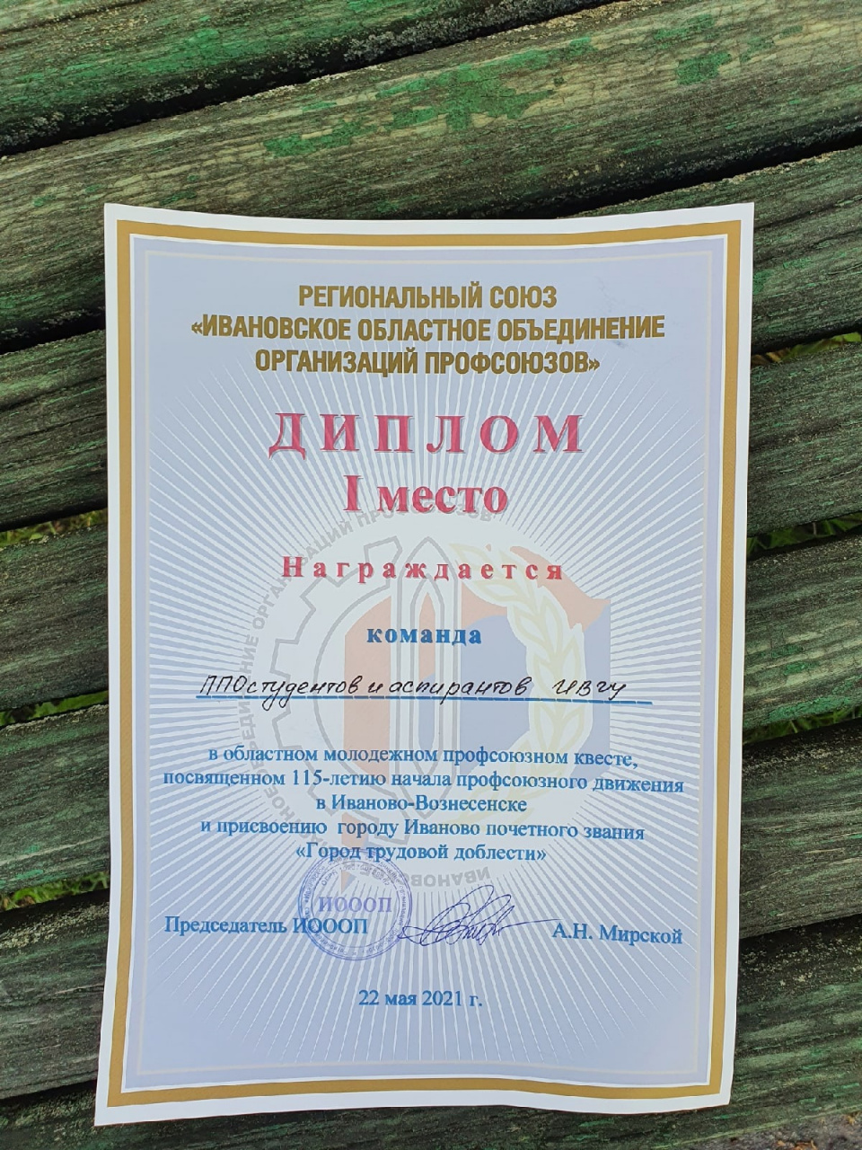 22 мая 2021 года состоялся Ивановский областной молодежный профсоюзный квест, на котором студенты Ивановского государственного университета заняли первое место из девяти команд!