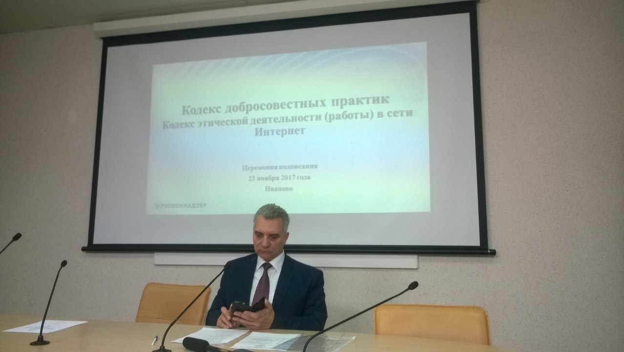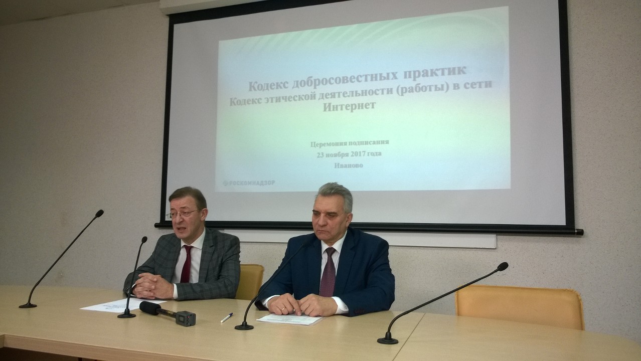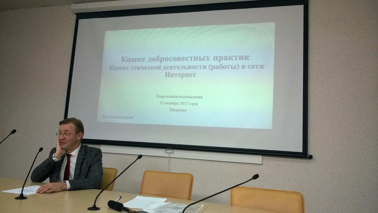 23 ноября 2017 года по инициативе Управления Роскомнадзора по Ивановской области в Департаменте внутренней политики Ивановской области состоялась церемония подписания Кодекса добросовестных практик (он же Кодекс этической деятельности (работы) в сети «Интернет»).