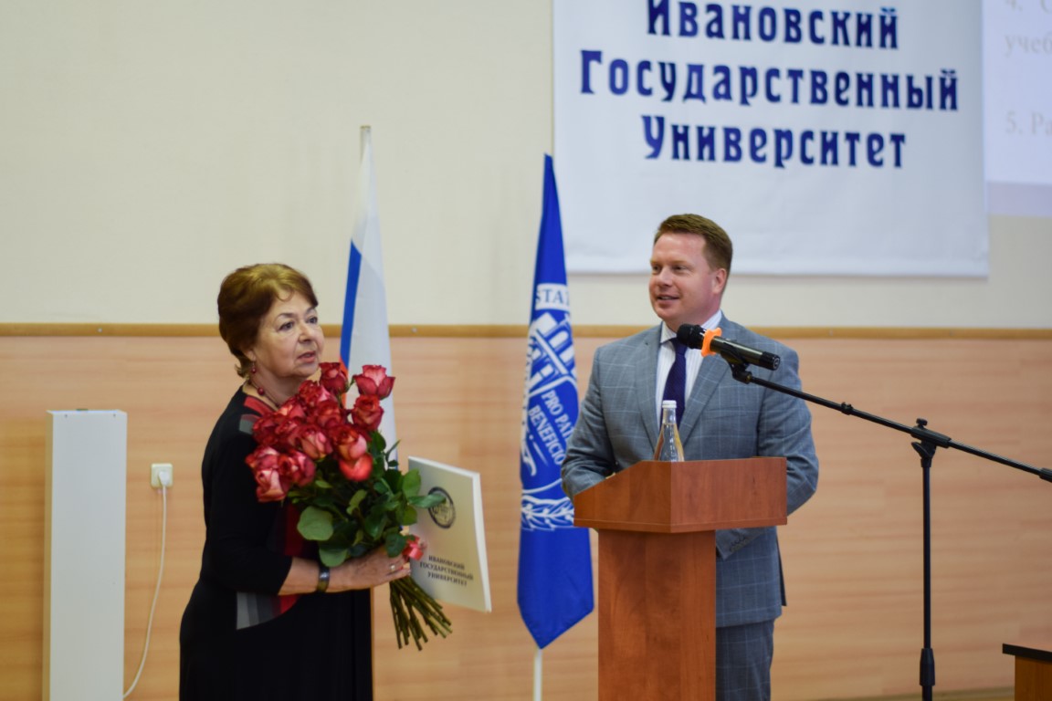 30 августа в актовом зале 1-го корпуса ИвГУ прошло традиционное заседание Ученого совета университета. Оно открылось торжественным поздравлением юбиляров. Ректор ИвГУ А.А. Малыгин вручил юбилярам поздравительные адреса, а они выступили со словами благодарности родному вузу, учителям и коллегам, причем А.С. Лифшиц и В.А. Годлевский выразили свою признательность в стихотворной форме.