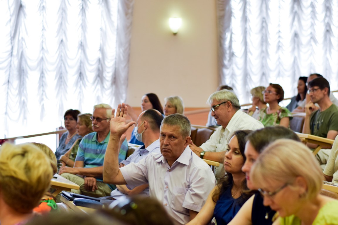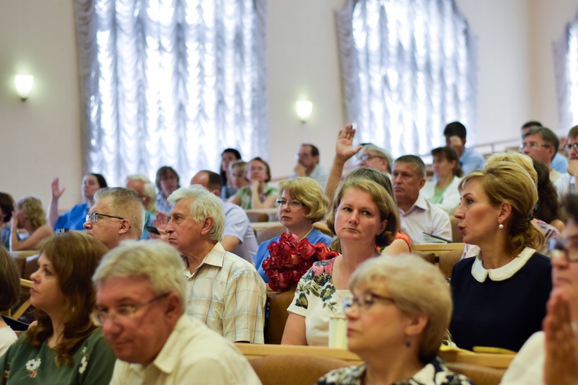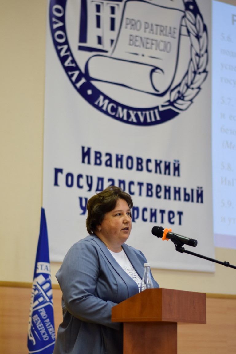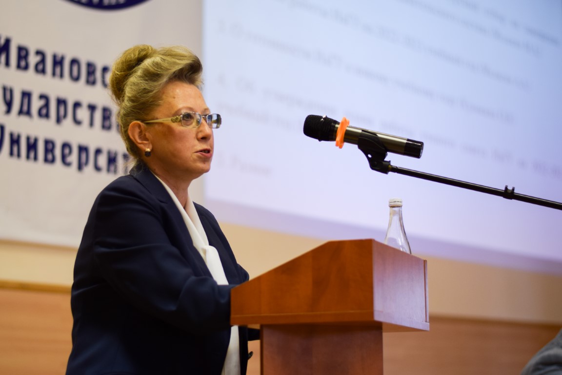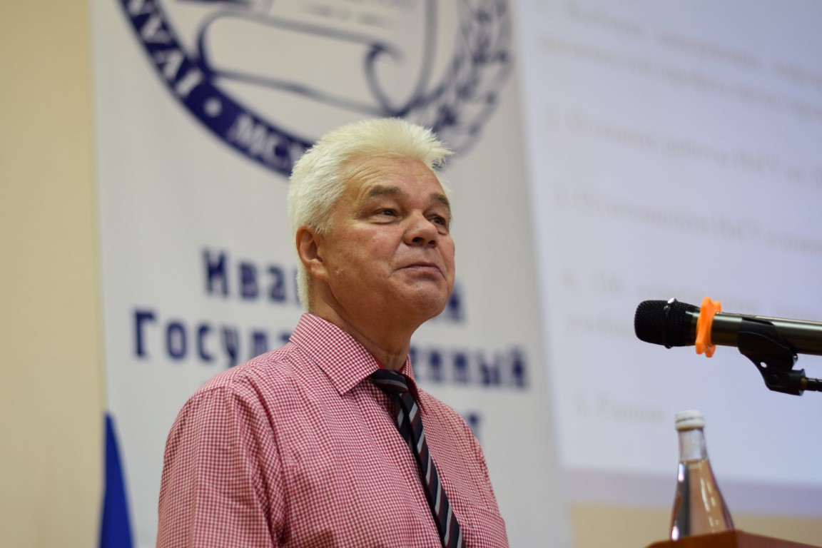 Затем А.А. Малыгин выступил с докладом, посвященным плану работы вуза на 2022–2023 учебный год. Он осветил итоги приемной кампании, объяснив многоаспектную связь между контрольными цифрами приема, количеством абитуриентов, их выбором профильных экзаменов, проанализировал имеющиеся проблемы в сравнении с общей статистикой по области и другим ивановским вузам. Перейдя к стратегическим целям и тактическим задачам, заложенным в «Программу развития ИвГУ 2022–2030», ректор кратко остановился на ее важнейших пунктах: разработке и реализации совместных программ с участниками научно-образовательного консорциума «Иваново» и работодателями; разработке порядка освоения студентами программ ДПО и внедрении системы одновременного получения нескольких квалификаций; создании центров для учителей и школьников на базе различных образовательных учреждений; поиске и внедрении новых форм работы с абитуриентами; поддержке приоритетных научных направлений в интересах развития университета, региона и страны; реализации прикладных исследований и проектов; поддержке и развитии молодежных инициатив – и др.