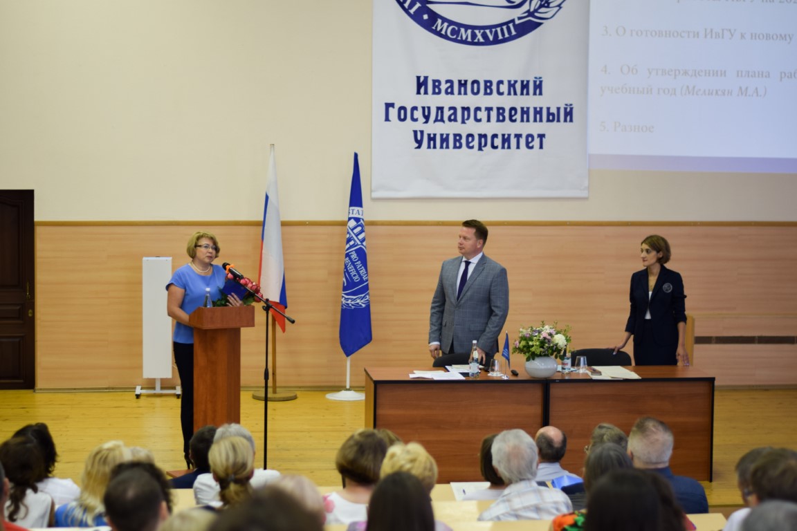 В рамках следующего пункта повестки заседаний первый проректор ИвГУ О.В. Кузьмина рассказала о готовности вуза к новому учебному году. После утверждения плана работы ИвГУ на следующий год и выступлений в разделе «Разное», посвященных внутренним вопросам жизнедеятельности вуза, А.А. Малыгин поблагодарил Ученый совет за эффективное сотрудничество и пожелал коллективу университета успешной работы в новом учебном году.