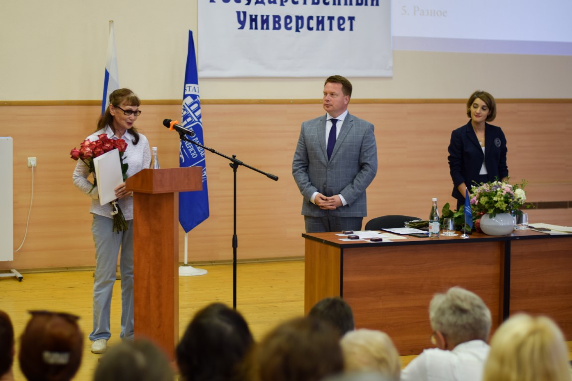 Далее ректор вручил ведомственные награды Министерства науки и высшего образования РФ. Почетное звание «Почетный работник сферы образования Российской Федерации» присвоено директору Института математики, информационных технологий и естественных наук Кустовой Т.П и профессору кафедры отечественной филологии Капустину Н.В. Почетное звание «Почетный работник науки и высоких технологий Российской Федерации» присвоено ведущему научному сотруднику НИИ наноматериалов Гиричевой Н.И. и профессору кафедры фундаментальной физики и нанотехнологий Годлевскому В.А. Почетной грамотой Министерства науки и высшего образования РФ награждена доцент кафедры непрерывного психолого-педагогического образования Дельцова И.А.