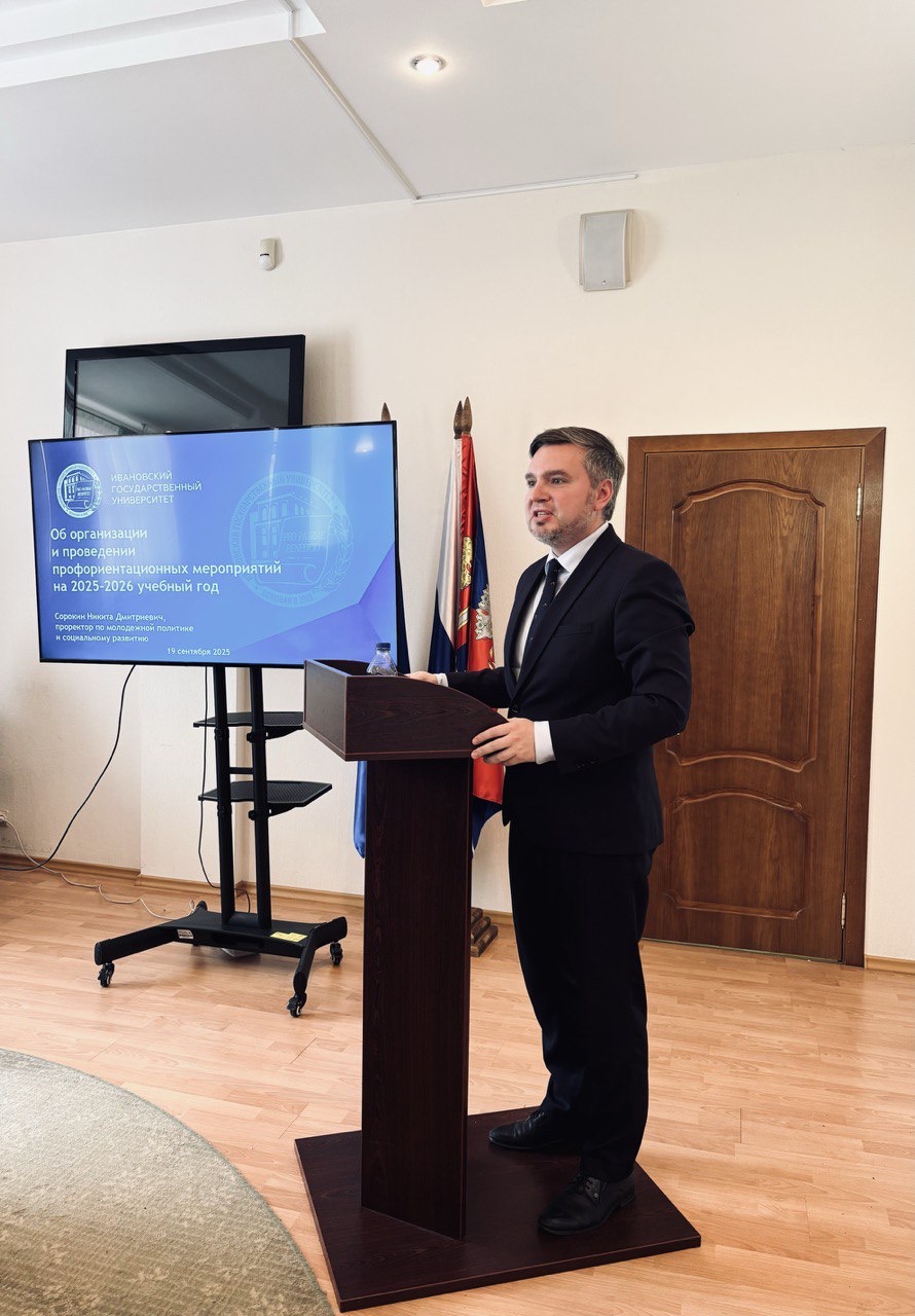 В рамках выступления проректора по молодежной политике и социальному развитию ИвГУ Никиты Сорокина были заданы ключевые направления профориентационной работы в 2025-2026 учебном году. В решении ученого совета по данному вопросу центральное место занимает блок, связанный с новыми интерактивными формами взаимодействия с абитуриентами, а также цифровое и медиа-сопровождение приемной кампании в новом учебном году.