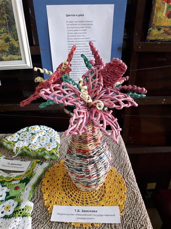 Конкурс проходил по номинациям «поделка», «картина», «стихотворение». Выставка работала на базе читального зала научной библиотеки ИвГУ, она вызвала искренний интерес у всех посетителей. Представленные фотографии дают возможность окунуться в атмосферу выставки, которая удивила разнообразием жанров и техник исполнения, дала возможность познакомиться с литературным и художественным творчеством коллег. Экспозиция работ сотрудников и сотрудниц ИвГУ была дополнена репродукциями картин из знаменитых музеев мира.
