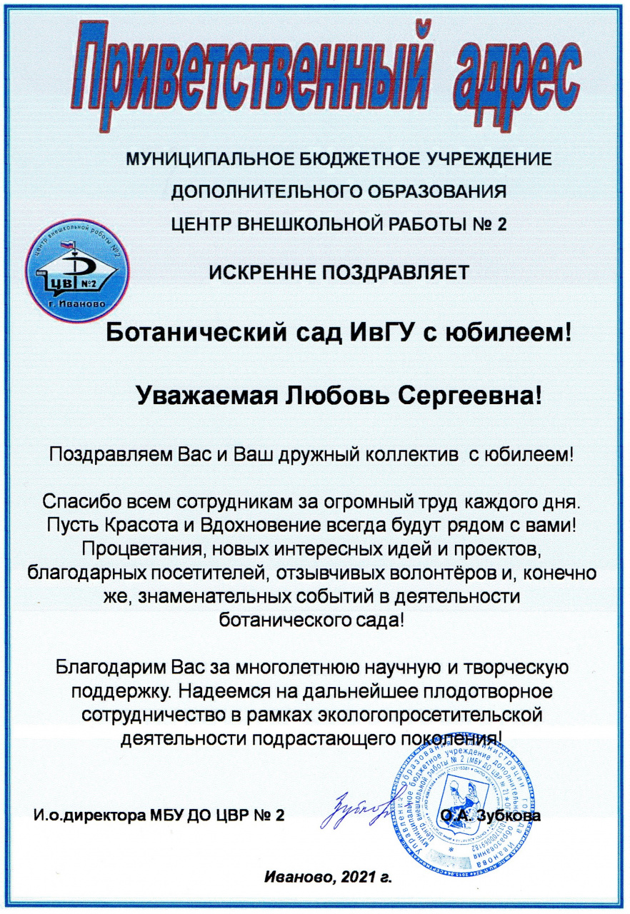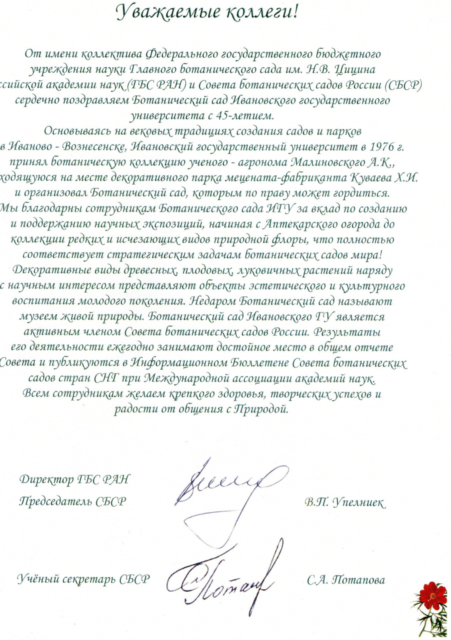 От всей души поздравляем коллектив Ботанического сада и всех причастных к его сохранению и процветанию с замечательным юбилеем и желаем успешной работы на благо нынешнего и будущих поколений!