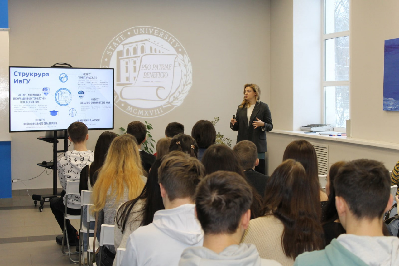 В «Точке кипения – ИвГУ» специалист центра «Карьера» Мария Трошина и помощник проектора по молодежной политике и социальному развитию Алла Михайлова рассказали школьникам об университете, правилах приема в 2023 году, об активной и насыщенной студенческой жизни. В основном вопросы старшеклассников касались количества бюджетных мест. Особенно они интересовались такими направлениями, как «Биология», «Химия», «Психология» и «Психолого-педагогическое образование»: многие хотят поступать в ИвГУ именно на них.