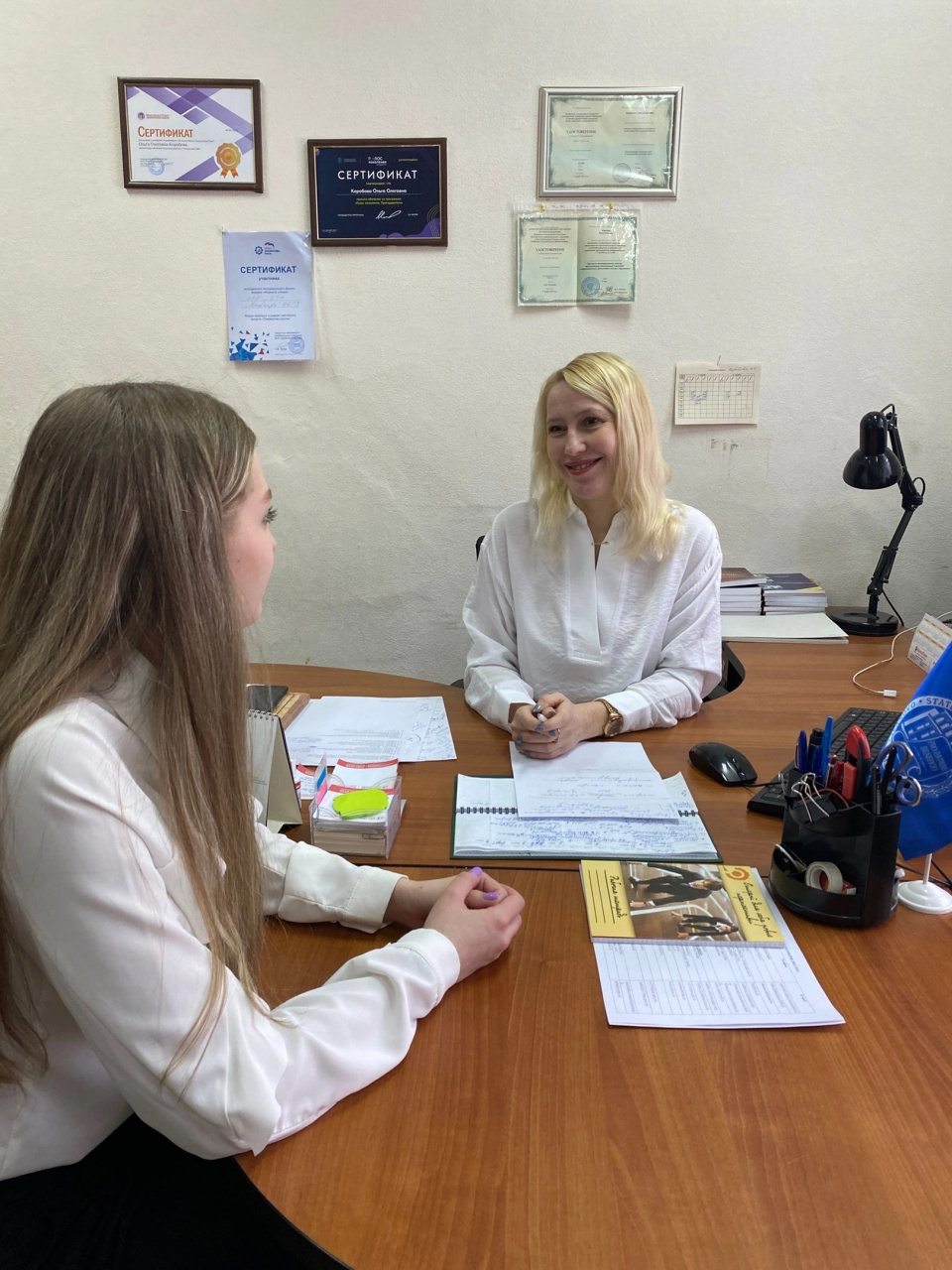3 февраля прошла встреча начальника центра «Карьера» Коробовой Ольги Олеговны со студенткой 2-го курса направления подготовки 38.03.03 Рыжко Анастасией. Студентка отметила, что не сомневается в выбранной профессии и хочет развиваться и быть лучшим специалистом в выбранном направлении. Предполагает работать с людьми, заниматься процессами организации и координации на предприятиях любой сферы.