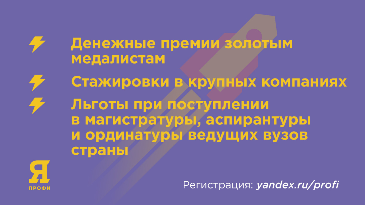Регистрируйся до 18 ноября на студенческую олимпиаду «Я – профессионал», соревнуйся, выигрывай денежные премии, стажировки в крупных компаниях и льготы при поступлении в магистратуры, аспирантуры и ординатуры ведущих вузов страны!