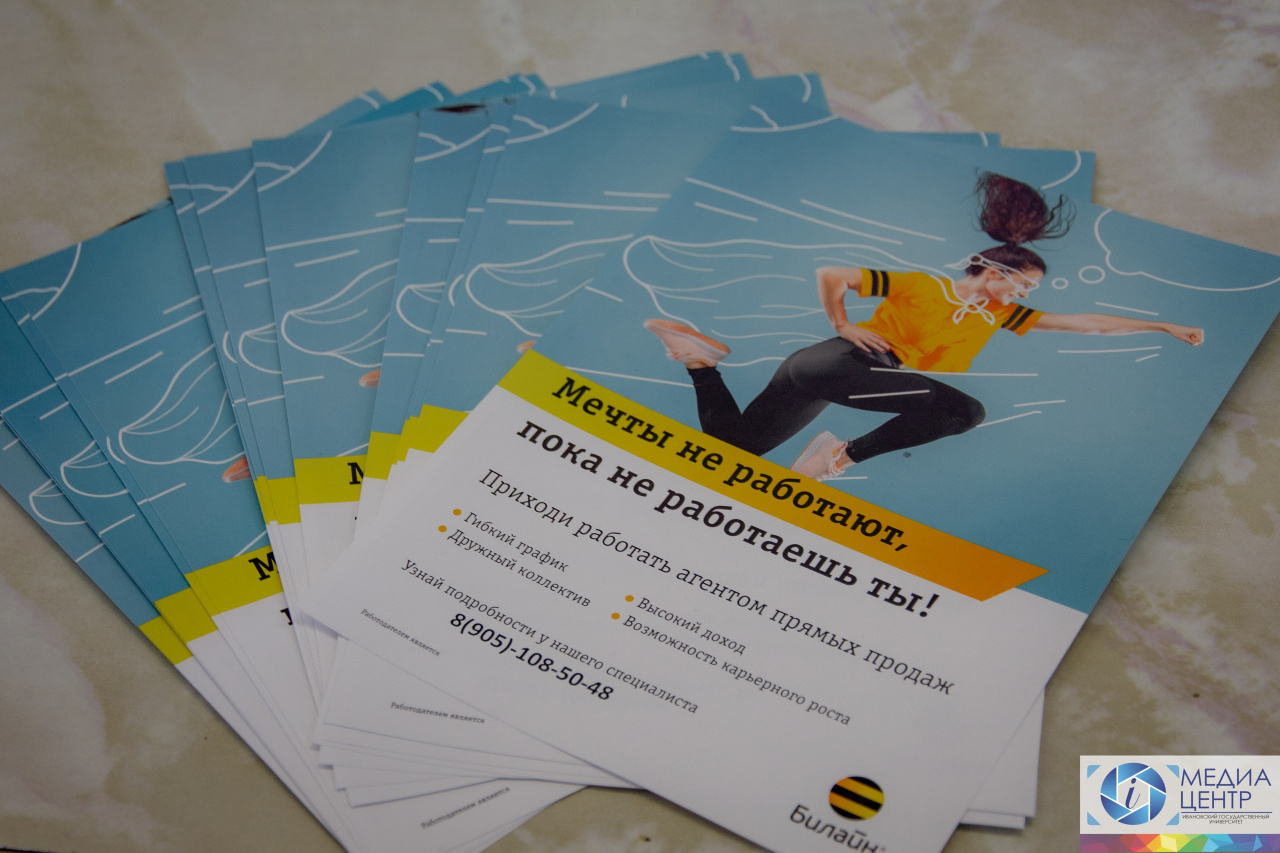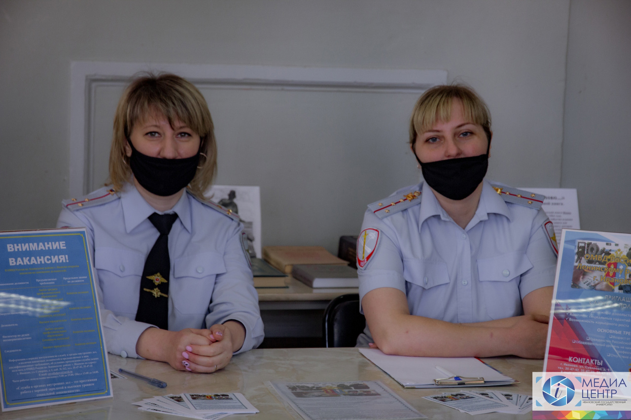 Далее молодым людям было предложено послушать информацию о службе по контракту и всех ее привилегиях. Остальные присутствующие спустились в читальный зал 1-го корпуса, где прошла сама ярмарка вакансий. Много различных организаций приняли участие в данном мероприятии, чтобы помочь молодым выпускникам и студентам найти свое место в жизни. Можно назвать такие организации, как ОМВД РФ, ОБ ДПС ГИБДД, АО «СОГАЗ», Бюро переводов «Дэйтабридж», Involta, УФНС России по Ивановской области, Департамент финансов Ивановской области, Центр управления регионом, Пункт отбора на военную службу по контракту, ООО «Интер РАО-управление сервисами», Институт профессионального развития ИвГУ, сеть центров дополнительного образования «Юниум» – и др. Выпускникам были предложены вакансии на государственной и гражданской службе, в коммерческих организациях на полную и частичную занятость, а также летние стажировки и базы для прохождения производственной практики. Проводились первичные собеседования и анкетирования.