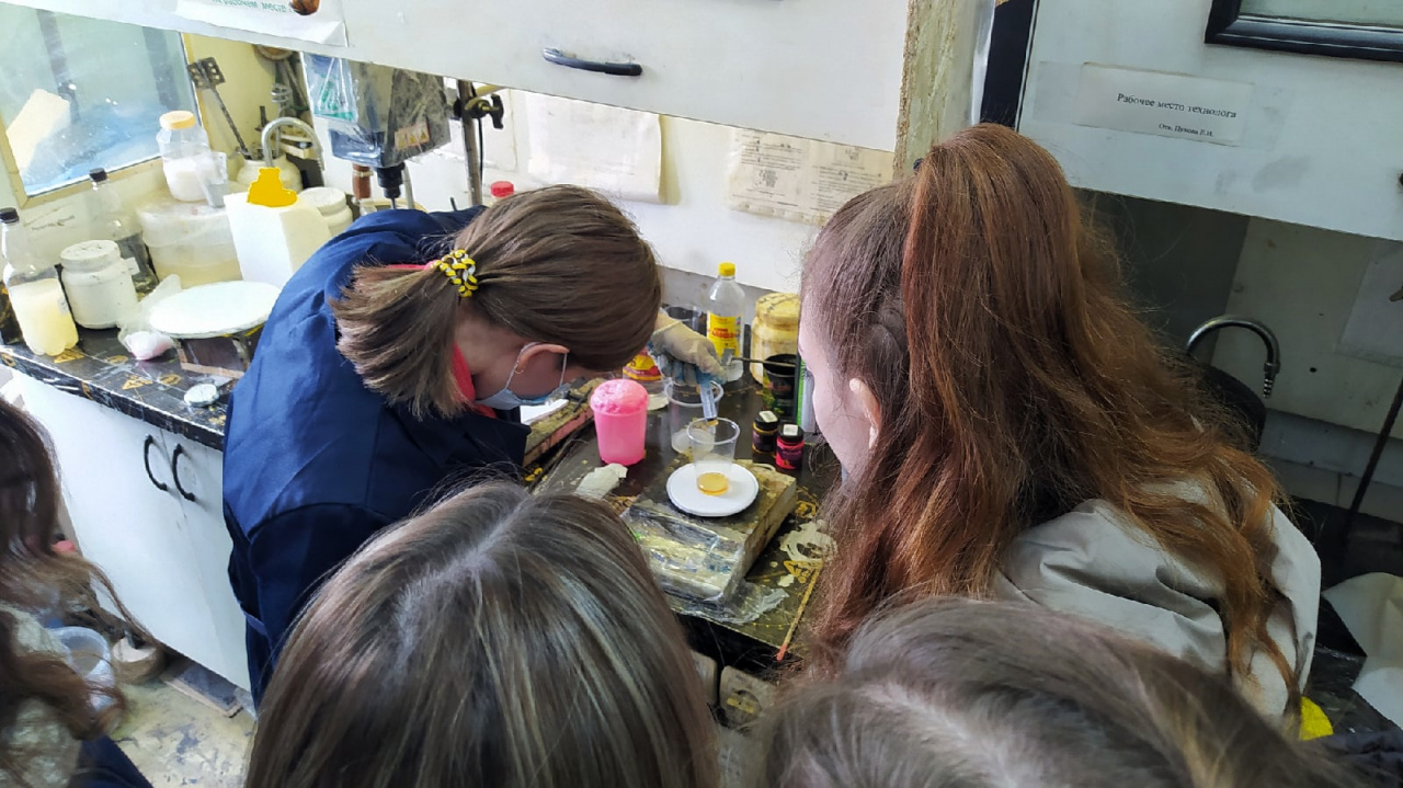 Студентам рассказали о продукции компании и нюансах ее производства, а также показали несколько экспериментов! Например, продемонстрировали огнезащитный материал, превращающийся в пену: образец нагрели до 900 градусов Цельсия, но вместо возгорания он начал постепенно превращаться в пену, температура которой не превышала 80 градусов – именно это свойство позволяет его использовать в качестве защиты строительных конструкций. И всё это благодаря скрупулезным разработкам в области химии!