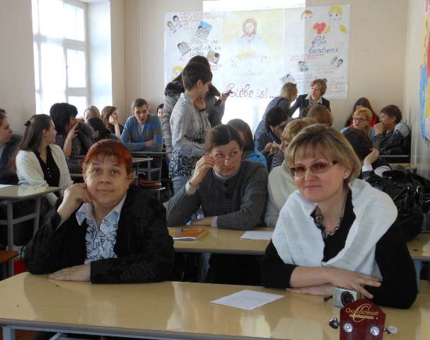 С 25 марта по 3 апреля на кафедре германской и романской филологии находились гости из Мюнстерланда (ФРГ), давние друзья кафедры председатель «Общества друзей Иванова» теолог и педагог Рюдигер Швульст и его коллега Даниэль Дреес, учитель гимназии. Рюдигер предложил традиционный проектный семинар, на сей раз под названием «Good news − jeden Tag eine gute Nachricht» и был рассчитан на студентов 1-го и 2-го курсов отделения немецкого языка. Анализу литературного произведения (в основу была положена одна из современных немецких песен) были посвящены семинары Даниэля Дрееса. Оба гостя провели также совместные семинары для учителей и преподавателей немецкого языка, посвящённые актуальным вопросам жизни современного немецкого общества. К нашему удовлетворению семинары собрали многочисленную учительскую аудиторию. Каждый из участвующих получил по окончании свидетельство об участии за подписью лекторов из ФРГ. В мае кафедру ожидает визит группы учащихся одного из колледжей Мюнстерланда (земля Северный Рейн – Вестфалия).