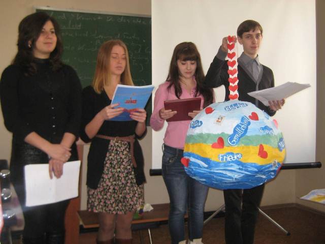 С 28 октября по 5 ноября в нашем университете а рамках договора о сотрудничестве находилась делегация «Общества друзей Иванова, Мюнстерланд/Теккленбургер ланд» (ФРГ) в составе Рюдигера Швульста, Даниеля Дрееса, Грютера Мартина. Состоялся приём у проректора по международным связям проф. Н.В. Усольцевой, где были обсуждены планы дальнейшего сотрудничества. Под руководством г-на Швульста на факультете РГФ прошёл семинар по проектной методике для студентов 2 и 3 курсов по теме «Религиозные мотивы в современной немецкой поп-музыке». Учащиеся практиковались в устной речи, пытались лучше понять культуру изучаемой страны. Каждый день студенты работали над одной из тем, выполняя определенные задания. Одни группы рисовали плакаты, создавали скульптурные композиции, другие в это же время готовили сценки по соответствующей тематике. Итоговые результаты работы были представлены в последний день семинара. Студенты также подготовили для г-на Швульста свою особую презентацию-благодарность за полученные во время работы семинара знания и за тёплую дружескую атмосферу. А уже с 14 ноября группа студентов немецкого отделения (7 человек) под руководством проф. Р.И. Бабаевой по приглашению «Общества друзей Иванова, Мюнстерланд/Теккленбургер ланд» в течение двух недель будет находиться на языковой практике в Германии.